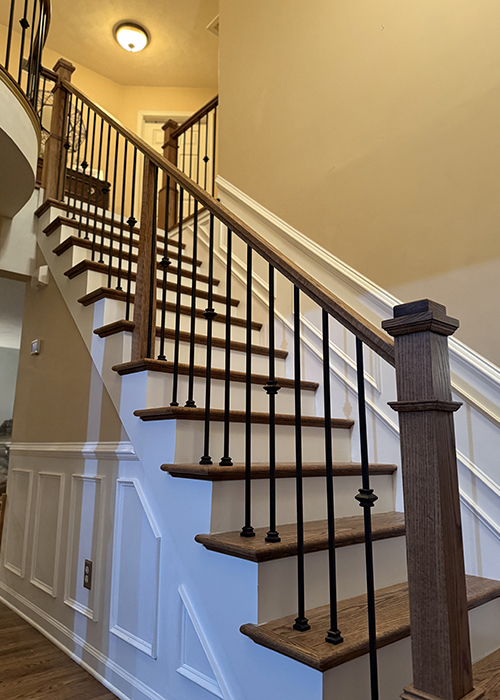 At Darby Stair Renovations, our stair renovation process includes removing outdated rails and balusters and replacing them with custom designs. We offer wood or iron balusters and custom finishes to ensure your new railings fit your home’s style.